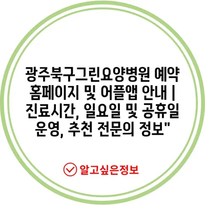 광주북구그린요양병원 예약 홈페이지 및 어플앱 안내 | 진료시간, 일요일 및 공휴일 운영, 추천 전문의 정보”