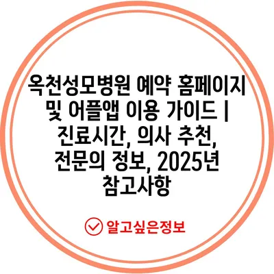 옥천성모병원 예약 홈페이지 및 어플앱 이용 가이드 | 진료시간, 의사 추천, 전문의 정보, 2025년 참고사항