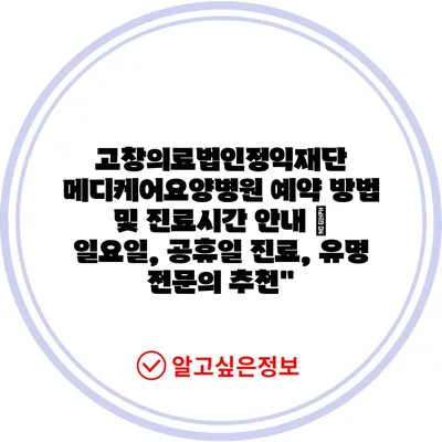 고창의료법인정익재단 메디케어요양병원 예약 방법 및 진료시간 안내 | 일요일, 공휴일 진료, 유명 전문의 추천”