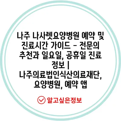 나주 나사렛요양병원 예약 및 진료시간 가이드 – 전문의 추천과 일요일, 공휴일 진료 정보 | 나주의료법인식산의료재단, 요양병원, 예약 앱