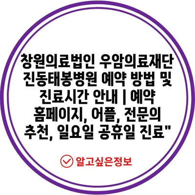 창원의료법인 우암의료재단 진동태봉병원 예약 방법 및 진료시간 안내 | 예약 홈페이지, 어플, 전문의 추천, 일요일 공휴일 진료”