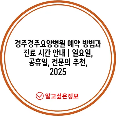 경주경주요양병원 예약 방법과 진료 시간 안내 | 일요일, 공휴일, 전문의 추천, 2025