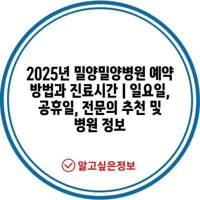 2025년 밀양밀양병원 예약 방법과 진료시간 | 일요일, 공휴일, 전문의 추천 및 병원 정보