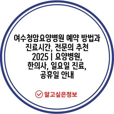 여수청암요양병원 예약 방법과 진료시간, 전문의 추천 2025 | 요양병원, 한의사, 일요일 진료, 공휴일 안내