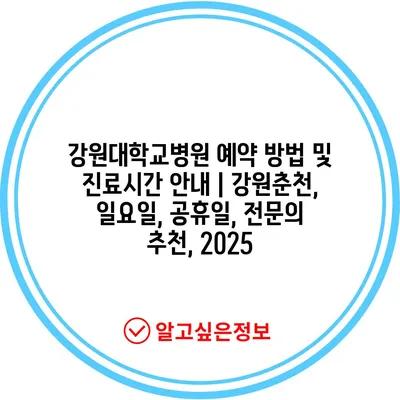 강원대학교병원 예약 방법 및 진료시간 안내 | 강원춘천, 일요일, 공휴일, 전문의 추천, 2025