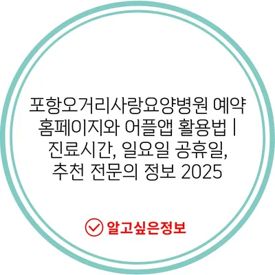 포항오거리사랑요양병원 예약 홈페이지와 어플앱 활용법 | 진료시간, 일요일 공휴일, 추천 전문의 정보 2025
