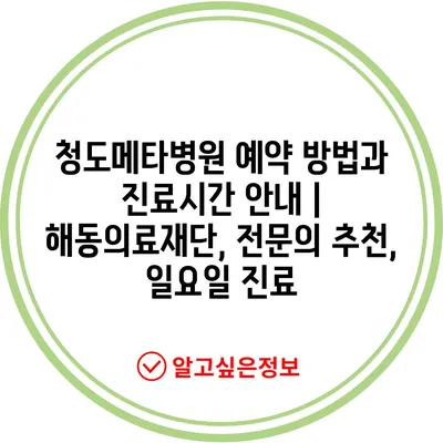 청도메타병원 예약 방법과 진료시간 안내 | 해동의료재단, 전문의 추천, 일요일 진료