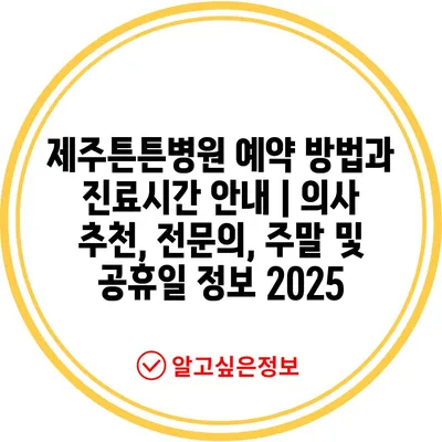 제주튼튼병원 예약 방법과 진료시간 안내 | 의사 추천, 전문의, 주말 및 공휴일 정보 2025