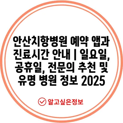 안산치항병원 예약 앱과 진료시간 안내 | 일요일, 공휴일, 전문의 추천 및 유명 병원 정보 2025