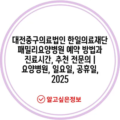 대전중구의료법인 한일의료재단 패밀리요양병원 예약 방법과 진료시간, 추천 전문의 | 요양병원, 일요일, 공휴일, 2025