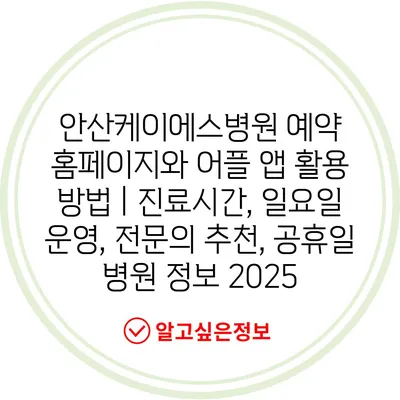 안산케이에스병원 예약 홈페이지와 어플 앱 활용 방법 | 진료시간, 일요일 운영, 전문의 추천, 공휴일 병원 정보 2025