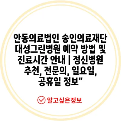 안동의료법인 송인의료재단 대성그린병원 예약 방법 및 진료시간 안내 | 정신병원 추천, 전문의, 일요일, 공휴일 정보”