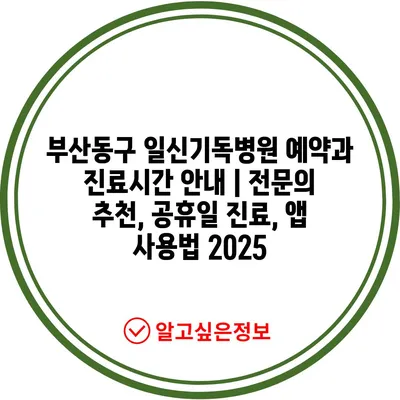 부산동구 일신기독병원 예약과 진료시간 안내 | 전문의 추천, 공휴일 진료, 앱 사용법 2025