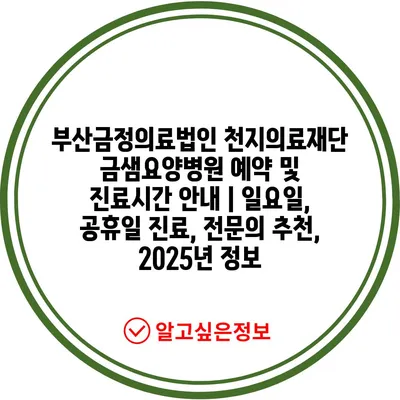부산금정의료법인 천지의료재단 금샘요양병원 예약 및 진료시간 안내 | 일요일, 공휴일 진료, 전문의 추천, 2025년 정보