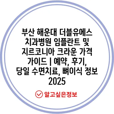 부산 해운대 더블유에스 치과병원 임플란트 및 지르코니아 크라운 가격 가이드 | 예약, 후기, 당일 수면치료, 뼈이식 정보 2025