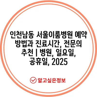 인천남동 서울이룸병원 예약 방법과 진료시간, 전문의 추천 | 병원, 일요일, 공휴일, 2025