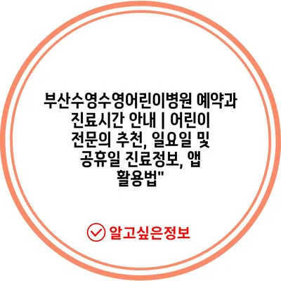 부산수영수영어린이병원 예약과 진료시간 안내 | 어린이 전문의 추천, 일요일 및 공휴일 진료정보, 앱 활용법”
