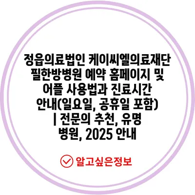정읍의료법인 케이씨엘의료재단 필한방병원 예약 홈페이지 및 어플 사용법과 진료시간 안내(일요일, 공휴일 포함) | 전문의 추천, 유명 병원, 2025 안내