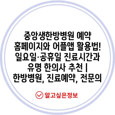 중앙생한방병원 예약 홈페이지와 어플앱 활용법! 일요일·공휴일 진료시간과 유명 한의사 추천 | 한방병원, 진료예약, 전문의