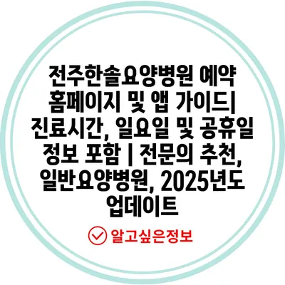 전주한솔요양병원 예약 홈페이지 및 앱 가이드| 진료시간, 일요일 및 공휴일 정보 포함 | 전문의 추천, 일반요양병원, 2025년도 업데이트