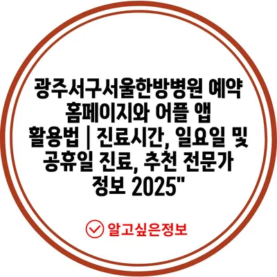 광주서구서울한방병원 예약 홈페이지와 어플 앱 활용법│진료시간, 일요일 및 공휴일 진료, 추천 전문가 정보 2025″