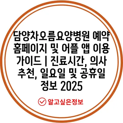 담양차오름요양병원 예약 홈페이지 및 어플 앱 이용 가이드 | 진료시간, 의사 추천, 일요일 및 공휴일 정보 2025