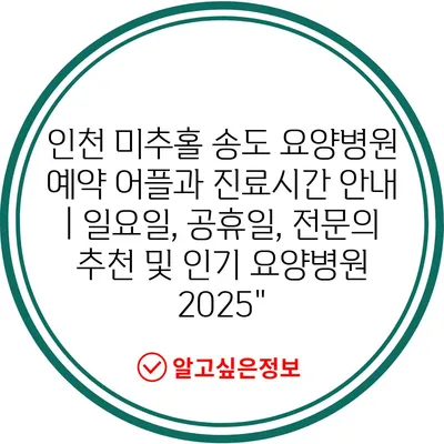 인천 미추홀 송도 요양병원 예약 어플과 진료시간 안내 | 일요일, 공휴일, 전문의 추천 및 인기 요양병원 2025″