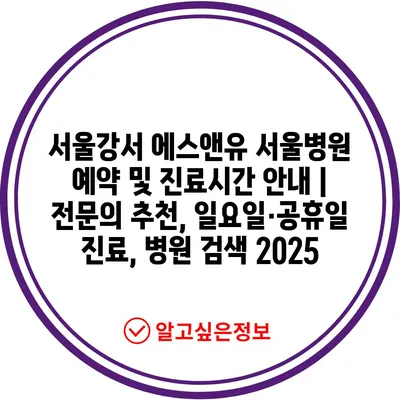 서울강서 에스앤유 서울병원 예약 및 진료시간 안내 | 전문의 추천, 일요일·공휴일 진료, 병원 검색 2025